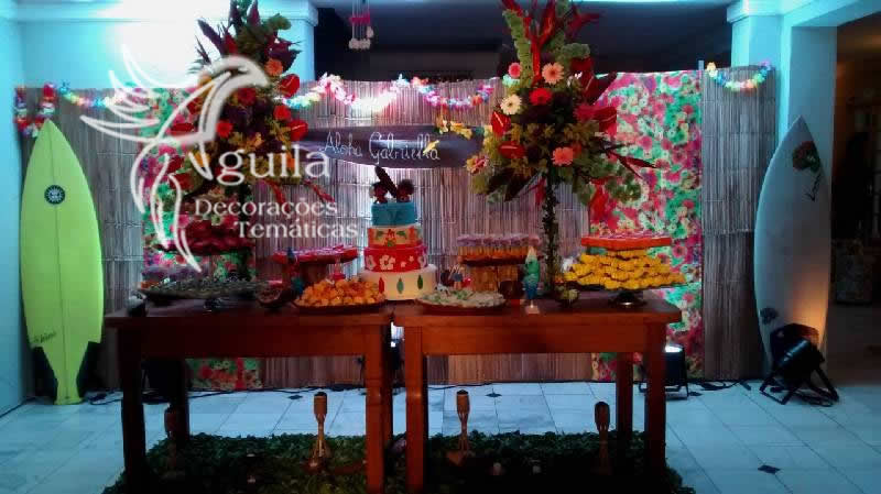 Para quem planeja organizar um evento com decoração havaiana pode extrapolar em quase tudo: cores, diversão, alegria, enfeites. O tema proporciona um clima do Havaí, por isso invista em flores, frutas, verdes e tudo que remete à natureza. Engana-se quem acha que só pode ser comemorado em uma festa de aniversário. A decoração havaiana pode ser levado em casamento ou até uma reunião entre amigos. Sem contar que é um clima ideal para o verão! Peça seu orçamento já.